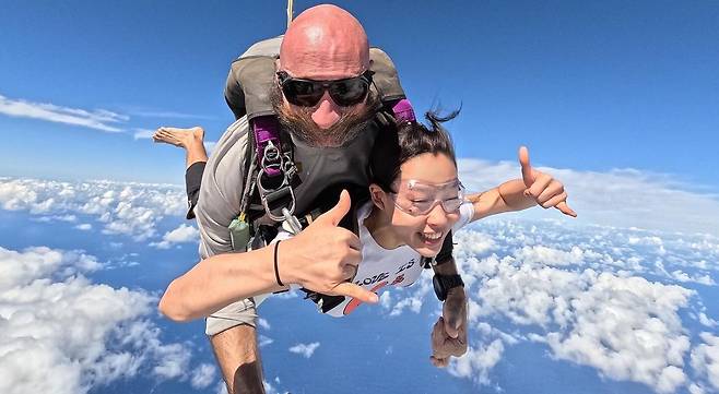 지난 7일 고민시는 자신의 인스타그램에 "내가 이 생으로 오기 전 만약 어느 통로를 통과해야 한다면, 그 곳을 지나칠 때 이런 기분이였을까. 아무 것도 없는 광활한 곳에 내던져지는 이 느낌은 평생 잊을 수 없을 값진 경험이 분명하다. 너무나 커다랗고 황홀하도록 아름다운 자연을 눈 앞에 두고 하늘 위를 날으는 것은 심각하게 벅차오르고 감동적이여서 눈물이 줄줄 흐르지만 상공 14,000피트 에서는 눈물도 순식간에 날라가버린다. 2024년의 첫 시작인 새해에 태평양의 천국 하와이에서 하는 스카이 다이빙은 내게 또 한 번 해낼 수 있는 용기와 희망을 듬뿍 가득 가득. ☁️🌴🌈" 라는 글과 함께 여러 장의 사진을 게재했다.
