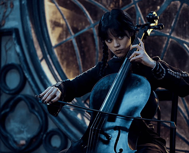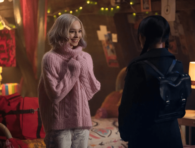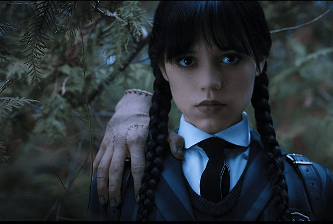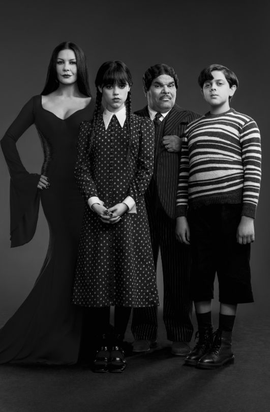 넷플릭스 시리즈 [너의 모든 것] 시즌2에 등장했던 '제나 오르테가'가 장녀 웬즈데이를 맡았는데요. 큰 눈에 무뚝뚝한 표정, 스모키 메이크업, 블랙 앤 화이트를 고집하는 패션 센스, 양 갈래 헤어스타일까지. 포켓에 넣고 싶은 아담 사이즈의 완벽한 웬즈데이로 변신해 미장센과 혼연일체를 보여 줍니다.