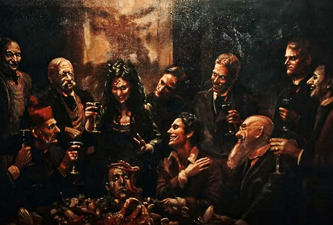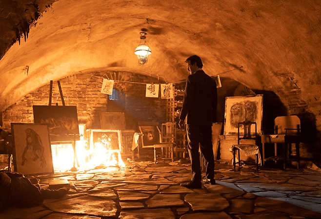 <모델>은 가난한 미대생이 재능 있는 외톨이 친구의 그림을 본 후 서서히 미쳐가는 과정을 그리고 있습니다. 어두움과 부패를 볼 줄 아는 눈을 가진 친구를, 세상은 ‘추악함’으로 매도했죠. 하지만 이는 결코 상상이 아닌 친구의 집안과 연결된 저주였는데요. 작품은 이 저주에 잠식되어 모든 것을 잃고야 마는 한 남자의 최후를 표현했습니다. 고야의 명화 ‘아들을 잡아먹는 사투르누스’의 신화가 연상되는 광기 어린 그림이 묘한 매력을 유발합니다.