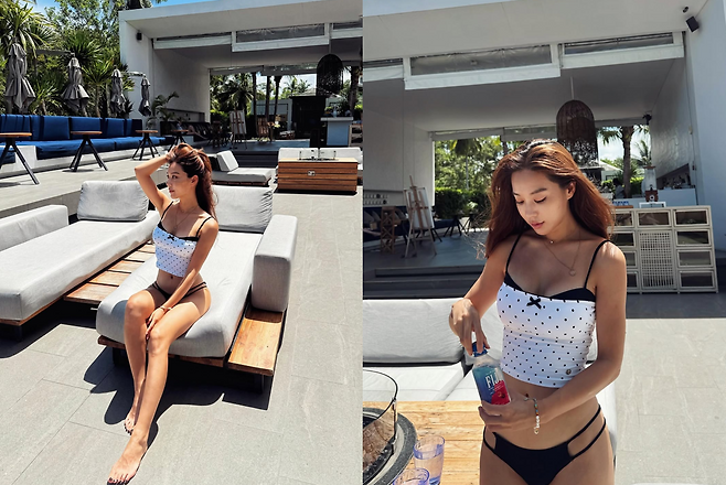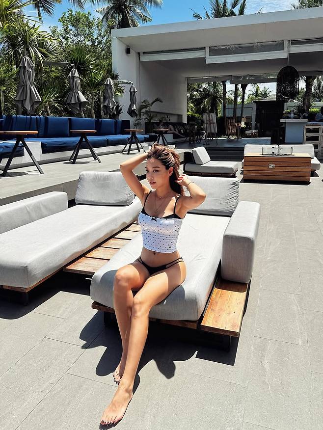 구릿빛 피부와 탄탄한 복근, 그리고 자신감 넘치는 미소. 그녀의 비키니 자태는 단순히 마른 몸매를 과시하는 것을 넘어,
