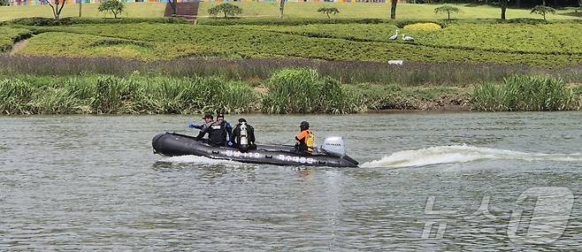 (순천=뉴스1) 김동수 기자 = 22일 오전 전남 순천시 동천 일대에서 급류에 휩쓸린 70대 실종자를 찾기 위한 수색 작업이 이뤄지고 있다.(순천시 제공. 재판매 및 DB 금지) 2025.7.22/뉴스1