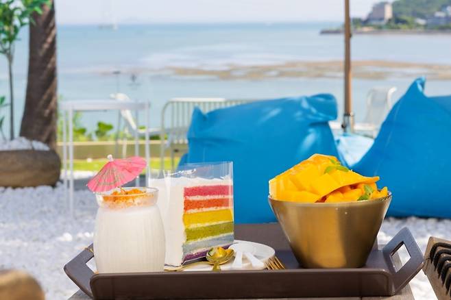 뒤편에 큼직하게 걸쳐진 순백의 천막도 색다른 풍경을 선사하죠. 탁 트인 영흥도 바다를 바라보며 생망고가 가득 올라간 ‘망고 치즈 빙수’와 베트남 맛을 그대로 옮겨온 듯한 ‘코코넛 스무디’, 그리고 시그니처 음료라 할 수 있는 ‘흑임자 크림커피’는 맛을 보자마자 미식의 세계로 빠져듭니다.