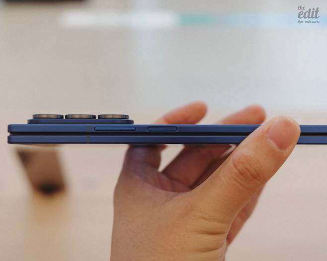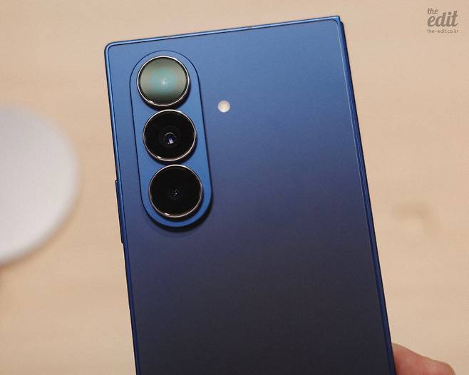 폴드7이 ‘울트라 같은’ 스펙을 지닌 부분은 카메라입니다. S25 엣지가 그랬던 것처럼 메인 카메라에 2억 화소 센서를 채용했어요. 거기에 AF 지원으로 접사가 가능한 1,200만 화소 초광각 카메라와 1,000만 화소의 망원 카메라가 조합됩니다. 2억 화소 센서를 사용하는 것은 물론 좋은 소식이지만, 큰 센서로 인해 카메라의 돌출 정도(일명 ‘카툭튀’)가 훨씬 심해진 점은 좀 아쉽습니다. 특히 바닥에 놓았을 때 카메라로 인해 덜그럭거리는 수준이 제가 여태 써본 스마트폰 중 가장 심했습니다. 그냥 케이스는 필수로 씌운다고 생각하는 게 좋을 듯합니다. 내부 화면의 전면 카메라 또한 400만 화소에서 1,000만 화소로 개선되었지만, 이 과정에서 기존의 UDC 방식에서 펀치홀로 변경되었어요.