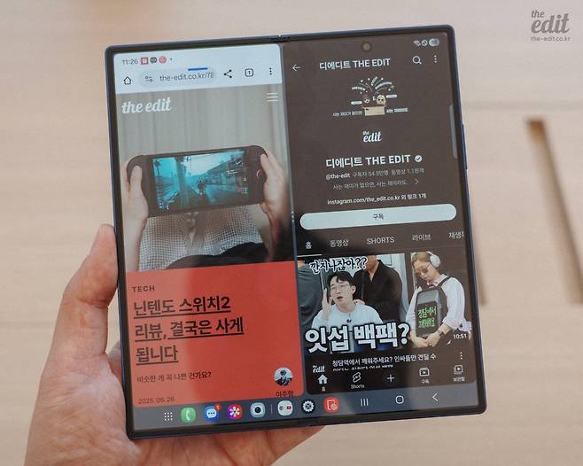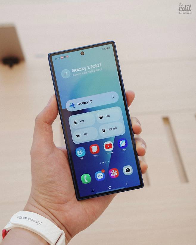 만약 제가 폴더블을 산다고 하면 플립형보다는 폴드 형식의 제품을 구매할 것 같다는 생각이 늘 들었습니다. 특히 아이폰과 더불어 아이패드 미니를 늘 들고 다니는 입장에서 이 두 기기를 하나로 합친다면 좋을 거 같다는 이유에서였죠. 이번에 폴드7을 만져보면서 제 꿈이 실현될 수도 있겠다는 생각이 들었습니다. 무려 7세대까지 와야 했지만, 드디어 폴드7은 이 폼 팩터의 완성형에 가까워졌다는 느낌입니다.