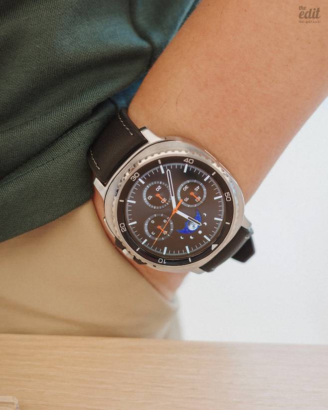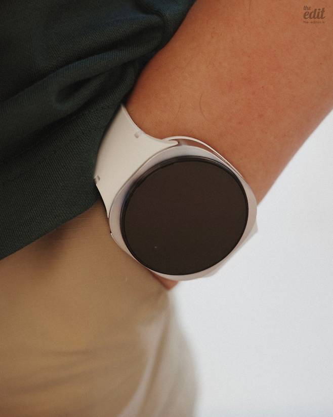 갤럭시 워치8 시리즈(이하 ‘워치8’)는 디자인이 꽤 크게 바뀌었습니다. 가운데의 원형 화면은 그대로지만, 주변으로 약간의 사각 요소가 추가된 쿠션 케이스 형태가 되었어요. 작년에 출시한 갤럭시 워치 울트라의 모습을 따라간 모습입니다. 울트라가 그랬던 것처럼 일반적인 시계의 모습보다 좀 더 러기드한 시계의 모습을 하고 있습니다. 케이스의 두께가 8.6mm까지 얇아졌는데요, 덕분에 보안장치가 장착된 점을 감안하더라도 착용감 면에서는 개선된 느낌이었어요.
