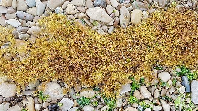 겉보기엔 돌처럼 단단하고 굵은 수세미처럼 생겼지만, 이것은 바닷속에 사는 해조류다. 이름은 모자반으로 제주도에서는 ‘톳 곰’이라 부르고, 남해안에선 ‘말 모자반’, ‘파래 곰’ 같은 이름으로 불린다.