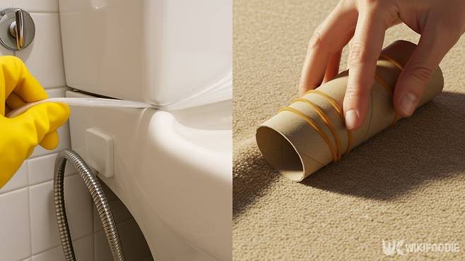 이불이나 카페트에 떨어진 머리카락을 떼려면 롤 테이프 클리너 등을 활용하는 것이 가장 좋은 방법이다. 하지만, 이 같은 도구가 없거나 청소용 테이프가 다 떨어졌다면 휴지 심과 고무줄을 이용해 간이 청소도구를 만들어볼 수 있다.