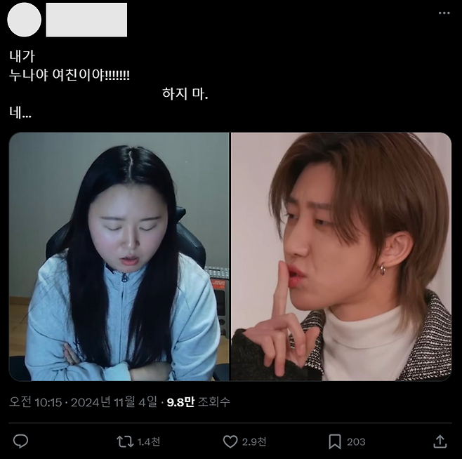이 문답을 계속 반복하다 학생이 머뭇거리며 이번엔 “누나…?”라고 답하자