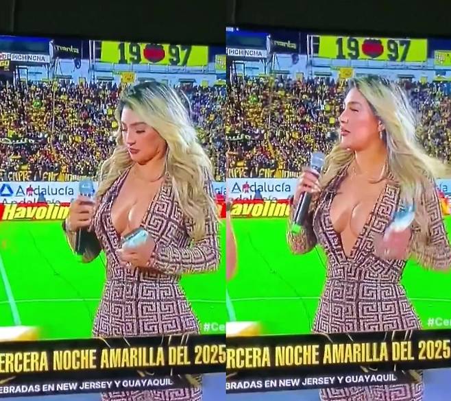 에콰도르에서 열린 행사에서 미녀 진행자의 과감한 드레스가 축구 팬들 사이에서 화제가 됐다.