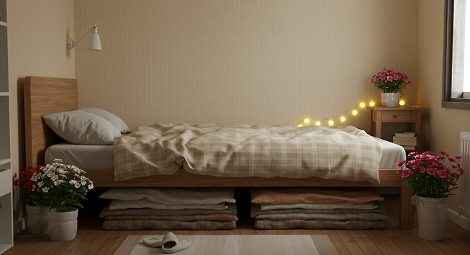 하지만 풍수에서는 침대 아래는 기운이 흐르는 ‘바닥 숨통’으로 보기 때문에, 이곳을 막아버리면 에너지의 순환이 끊긴다고 여깁니다.