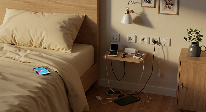 특히 콘센트 주변에 전자기기가 여러 개 연결돼 있거나, 머리맡에 휴대폰을 두고 자는 습관은 숙면은 물론이고 재물과 관련된 기운의 안정성에도 영향을 줄 수 있습니다.