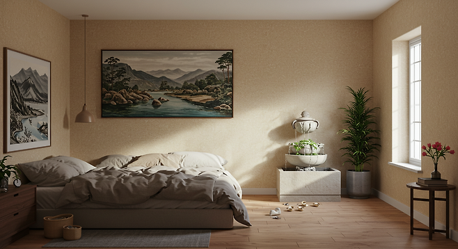 물이 상징하는 건 운의 흐름이기도 하지만, ‘잠자는 공간’에서는 그 흐름이 오히려 평온함을 깨뜨릴 수 있다는 점을 꼭 기억하셔야 합니다.