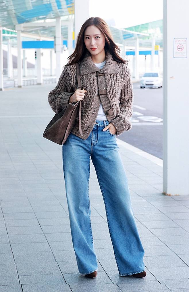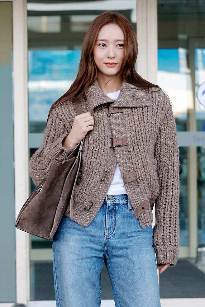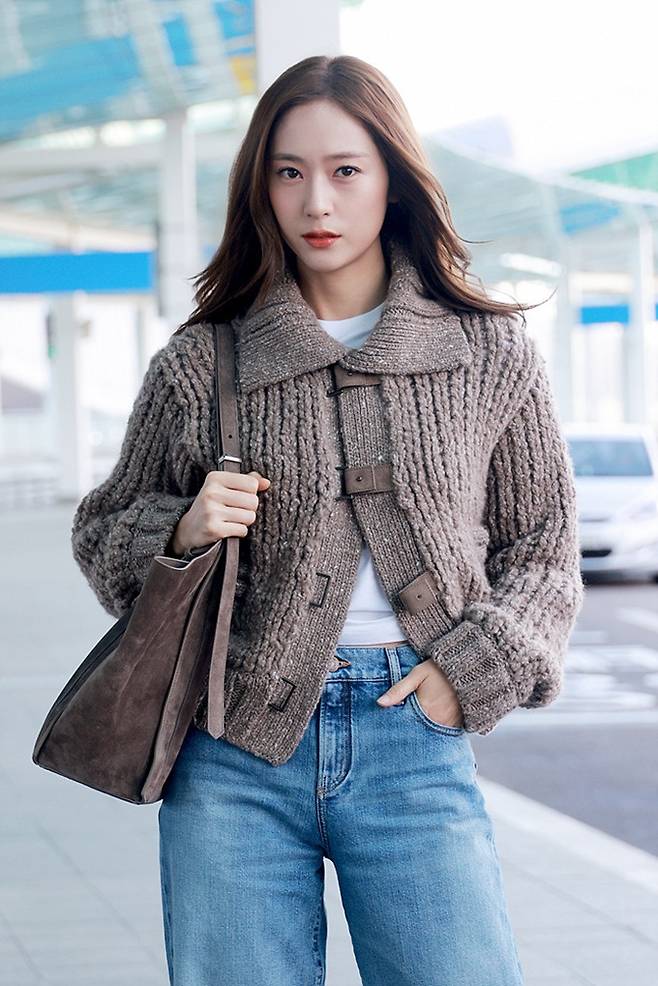 가수 겸 배우 정수정(크리스탈)이 도네갈 니트 카디건 출국룩으로 상큼한 미모를 뽐냈다.