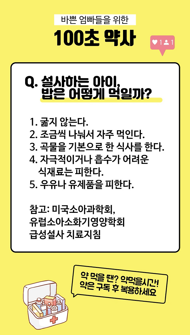 이렇게 알려드린 다섯 가지 내용들이 아이의 설사 회복에 도움되시길 바랄게요!