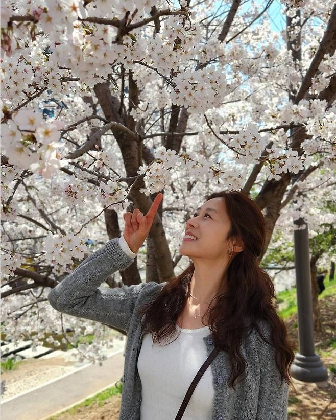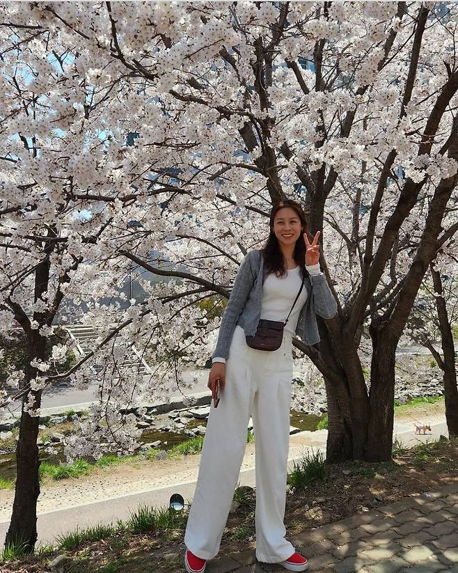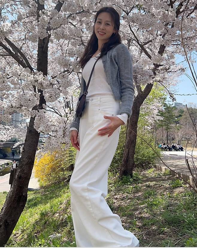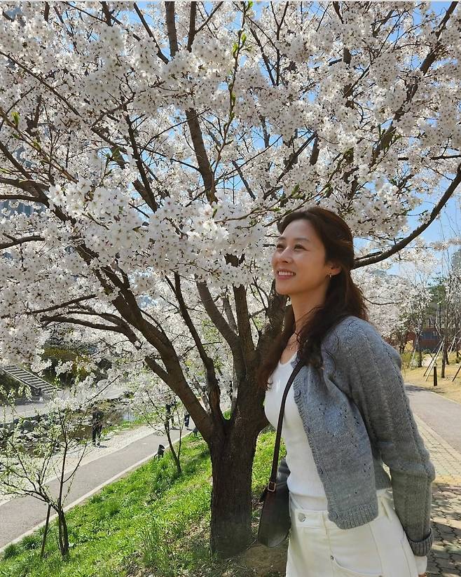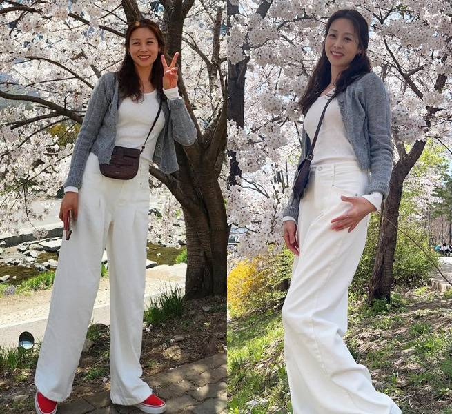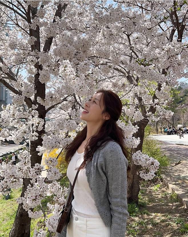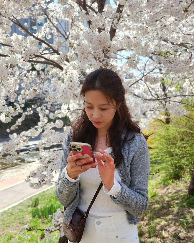 허리에 살짝 걸친 미니 크로스백은 실용성과 스타일을 모두 챙긴 선택이었으며, 내추럴하게 넘긴 웨이브 헤어와 잔잔한 미소는 벚꽃 풍경과 완벽하게 어우러지며 현실판 순정만화 주인공 같은 미모를 뽐냈습니다.