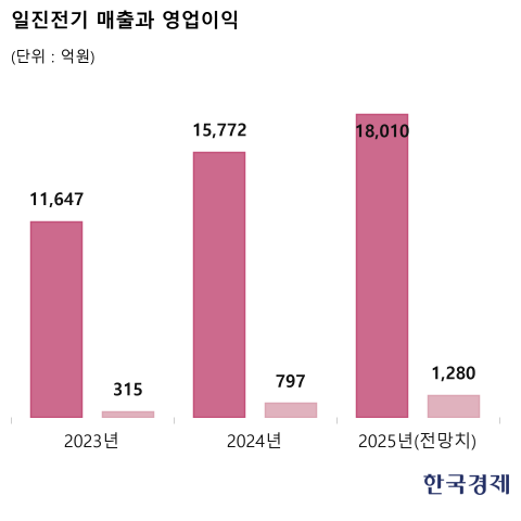 코스피 시가총액(1조3304억원) 206위 일진전기는 일진그룹의 모태다. 지주사인 일진홀딩스, 일진디스플레이, 일진다이아, 일진하이솔루스 등 5개의 상장사가 있는데 일진전기가 실적이 가장 좋다. 1968년 1월 22일 설립됐는데 자동차용 주물 등 비철금속 소재 산업으로 시작해 한국전력과 관련 사업이 늘며 전력기자재로 방향을 틀었다. 현재 초고압 송·변전 및 배전 분야에서 초고압 케이블, 초고압 변압기, 초고압 차단기 및 전력기기를 제조해 국내외 전력·발전회사와 민간 제조사 등에 공급한다.