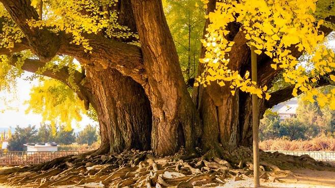 그중에서도 국내 최고령, 무려 1318살로 추정되는 ‘반계리 은행나무'(강원특별자치도 원주시 문막읍 반저리2길 42)는 해마다 이맘때가 되면 전국에서 발길이 몰리는 단풍 명소다.