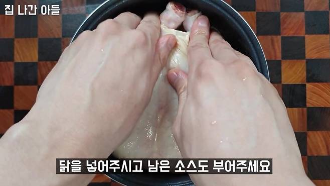 닭에 양념장을 전체적으로 고르게 입혀주세요.