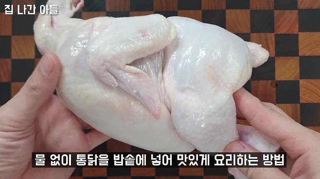 1. 신선한 닭 한 마리 준비 물 없이도 가능한 밥솥 통닭요리! 닭은 손질해서 준비해주세요.