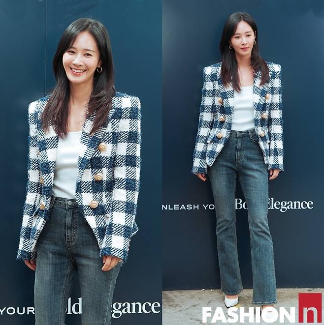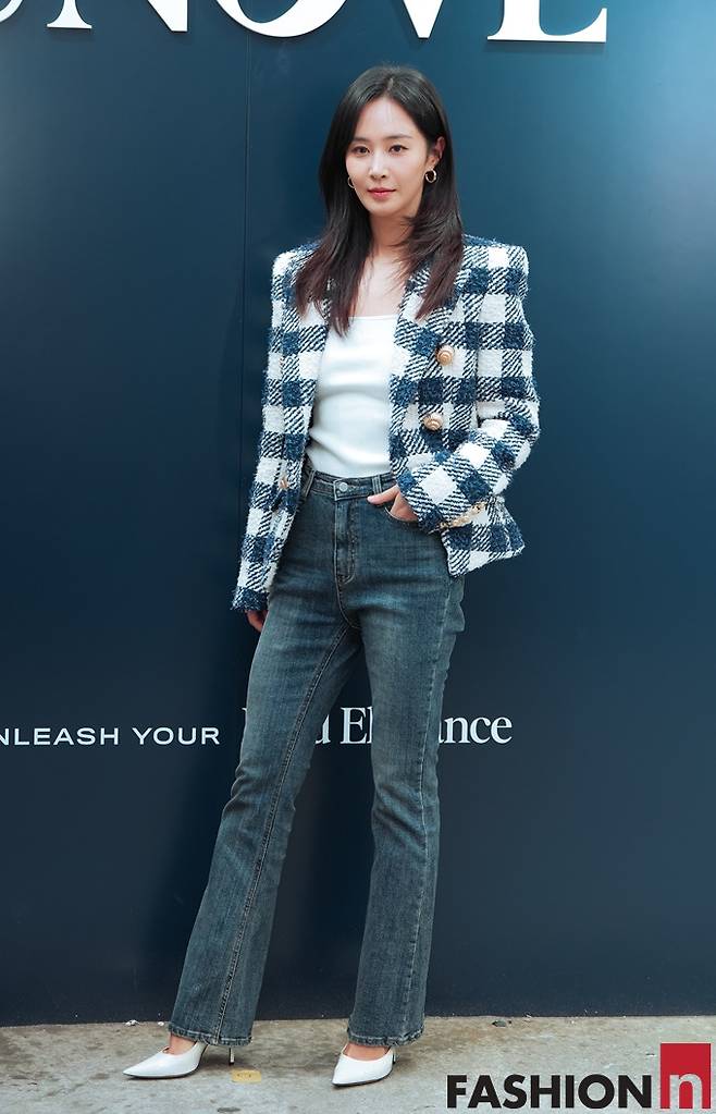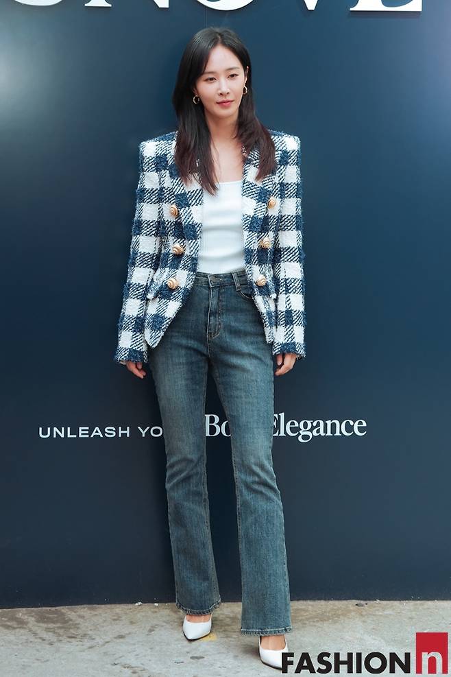 이날 유리는 데님 팬츠와 화이트 티셔츠에 골드 버튼이 멋스러운 트위드 재킷의 캐주얼한 꾸안꾸룩으로 행사장을 빛냈다.