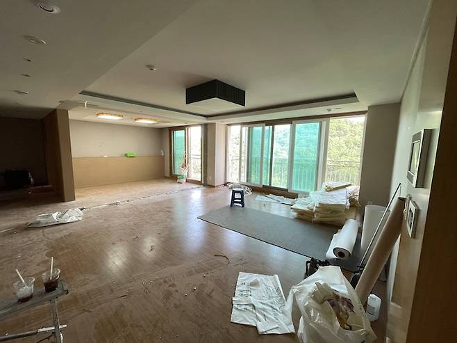 연식이 보이긴 하지만 전체적으로 널찍하고 뷰도 좋았어요. 집을 계약하자마자 아트 월을 철거해 방 하나를 없애고 거실을 확장하기로 결심했답니다.