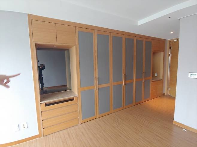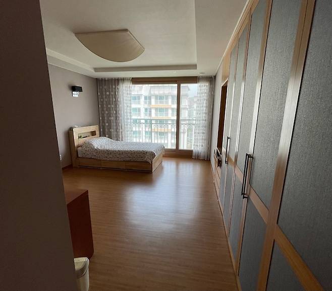 기존 안방의 모습이에요. 거실과 마찬가지로 전체적으로 우드 톤이 중심이었던 공간이었어요.