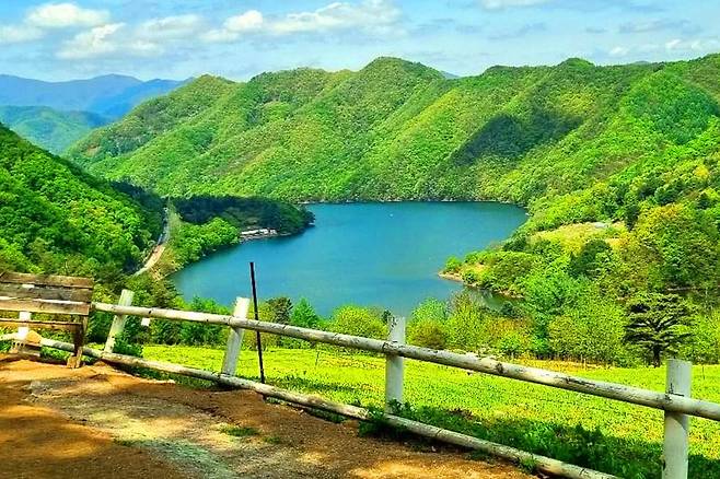 이곳은 목장의 넓은 초지와 함께, 푸르른 춘천호가 한눈에 내려다보이는 장소로, 마치 유럽의 알프스 목장을 닮은 풍경이 펼쳐집니다.