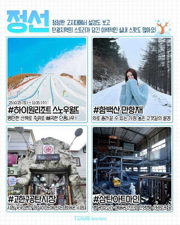 ✅ 하이원리조트 스노우월드 ✅ 함백산 만항재 ✅ 고한구공탄시장 ✅ 삼탄아트마인