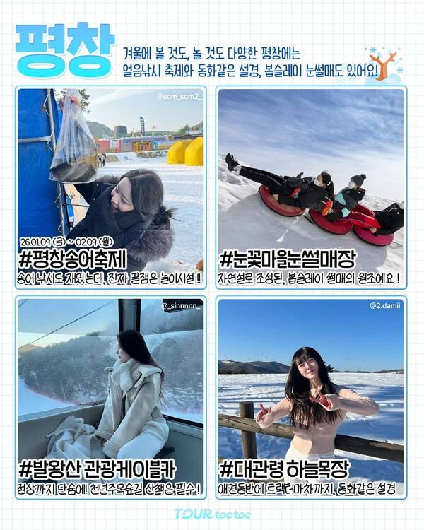 ✅ 평창송어축제 ✅ 대관령 눈꽃마을눈썰매장 ✅ 발왕산 관광케이블카 ✅ 대관령 하늘목장