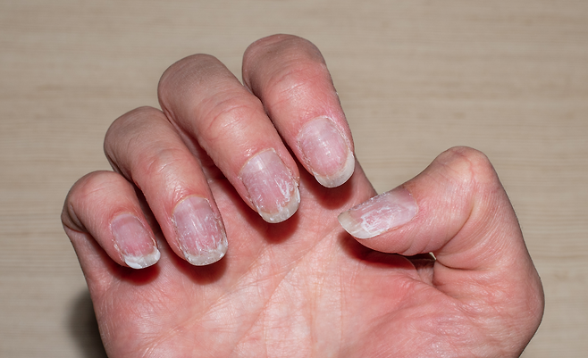 손톱에 흰색 반점이나 줄무늬가 생기는 것은 손발흰무좀이라는 진균 감염의 징후일 수 있습니다. 손발흰무좀은 손톱 및 발톱이 두꺼워지고, 색이 변하며, 흰색 반점이나 줄무늬가 나타나는 것이 특징입니다. 감염된 부위는 가려움증을 동반할 수 있으며, 심한 경우 손톱이 손상되거나 갈라질 수 있습니다.