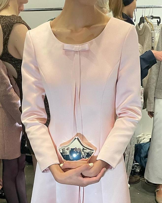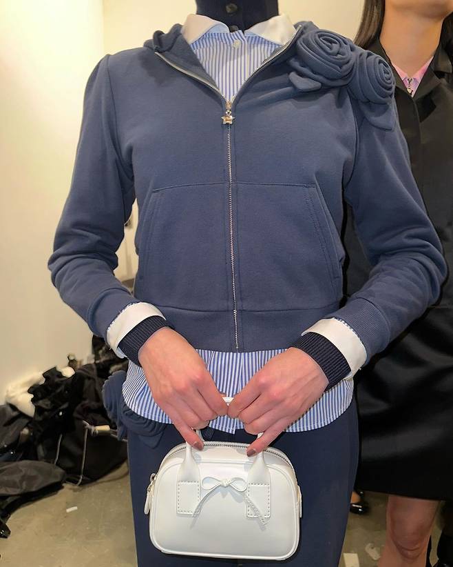 특히 핸드백과 슈즈에 장식된 리본 디테일이 소녀 감성을 한껏 끌어올려주네요.