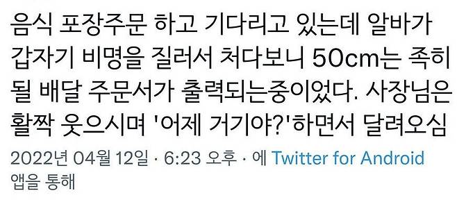 카페 알바생이 갑자기 소리 지른 이유