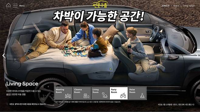 아이오닉 9은 가족 단위 이용객을 위한 편의 기능도 강화했다. 리빙 스페이스는 시네마 룸과 미팅 룸 등 다양하게 활용할 수 있으며, 아일랜드 이동식 콘솔은 앞뒤로 이동 가능해 2열에서 테이블로 사용할 수 있다. 또한 릴렉세이션 모드를 통해 이동 중에도 편안함을 느낄 수 있다.