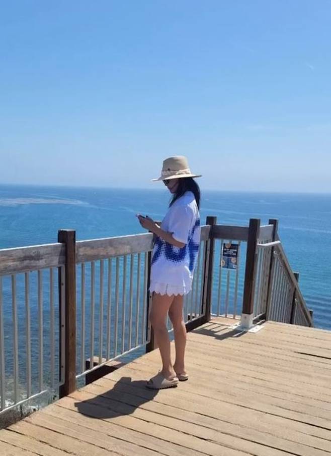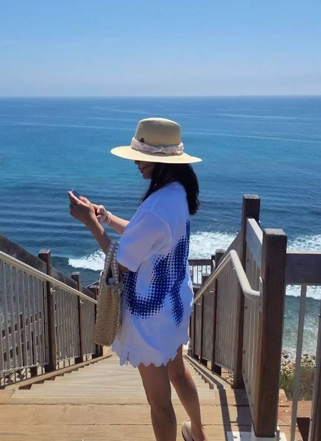 배우 김희선이 미국 캐리포니아 말리부 해변에서 짧은 쇼츠에 오버피 셔츠 하의실종룩으로 시선을 사로잡았다.
