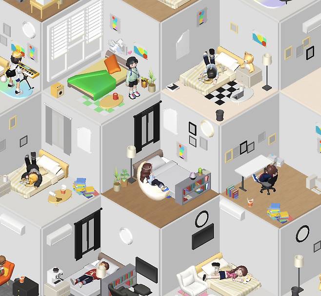 이뿐만 아니라 본디에는 '아파트'라고 해서 친구들의 집을 한 눈에 볼 수 있는 탭이 있는데, 그 곳에서 예쁘고 마음에 드는 집에 들어간 후 누군지 확인하려고 해도 볼 수가 없다. 그렇게 아파트를 통해서 들어가면 '메모'를 남길 수 있게 버튼이 있는데, 누구 집인지도 몰라 쉽게 메모를 남길 수도 없다. 어쩌면 불필요한 기능도 들어간 거라고 볼 수 있다.