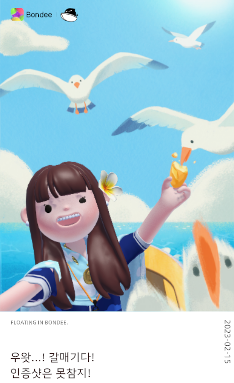 바로 플로팅이다. 워낙 영상미가 좋아서 보고 있으면 힐링이 된다고 말 했지만, 이게 지금 본디 어플에 무슨 기능을 하는지 하나도 감이 잡히지 않는다. 물론 선물도 나오고, 사진도 찍을 수 있고, 가끔 멋있는 장면이 나오긴 하는데, '이게 그래서 친구들이랑 소통하는 메타버스에 왜 있는거지?'라는 의문만 품게 만드는 기능이다. 내가 생각하기에 본디가 소통에 조금 더 초점을 맞췄다면 메모 몇 번에 히든 아이템 증정이라든가 친구 초대를 많이하거나 '콕찌르기'를 하면 랜덤으로 히든아이템이 나왔으면 좀 더 재미있었을 것 같다는 생각이 든다.