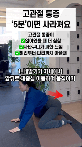 네발기기 자세에서 앞 뒤로 체중심 이동하며 움직여줍니다