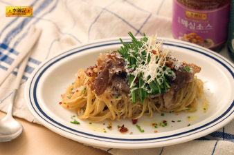 글로벌 소스 브랜드 이금기가 소개하는 파스타 레시피는 달래를 넣은 냉파스타입니다.