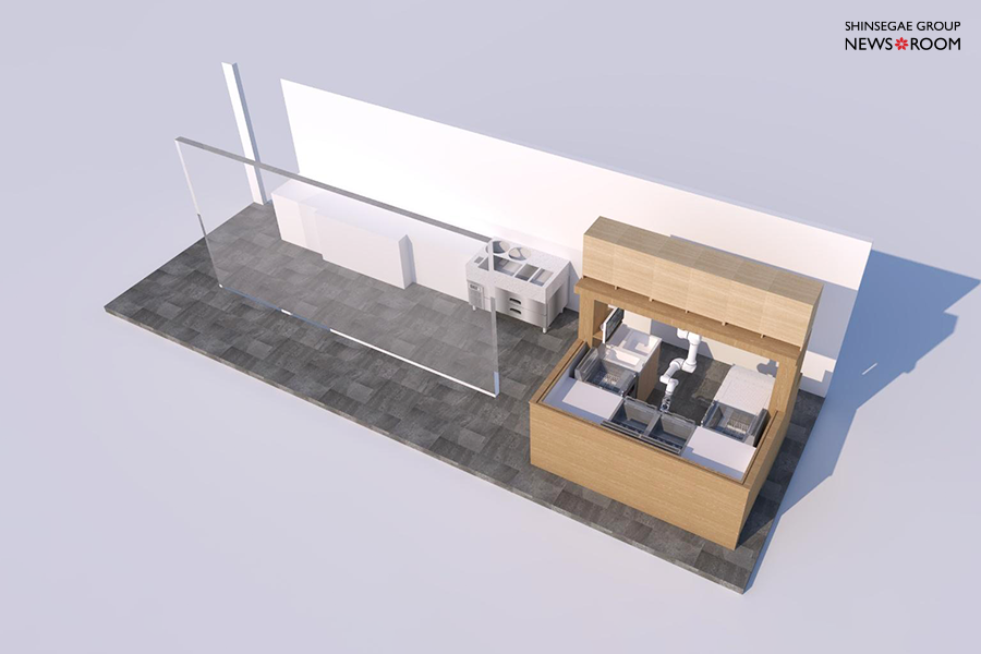 조리 공간은 여러 작업자가 한정적인 공간에서 안전하게 작업이 이뤄져야 하므로, 도면 설계 시 더욱 신중한 고민이 필요해요. 특히 로봇은 상품 생산과 동시에 고객들에게 새로운 경험을 제공하는 역할을 하기 때문에, 조리실 내부 깊숙이 위치하기보다는 고객에게 잘 노출될 수 있는 작업 공간이 필요했죠. 그러나 최우선으로 고려해야 할 점은 고객과 작업자의 안전이므로, 두 가지를 모두 고려한 공간을 구성해야 했습니다.