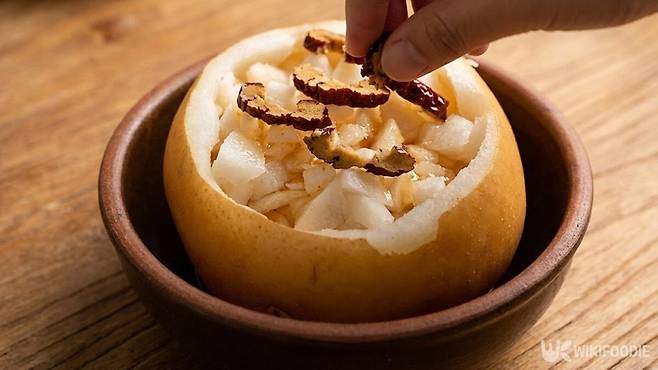 배는 수분 함량이 매우 높은 과일이다. 건조한 날씨와 미세먼지로 자극받은 목을 촉촉하게 만드는 데 도움이 된다. 예부터 기침이 날 때 배를 쪄 먹거나 배즙을 내 마시는 방식이 이어져 왔다.