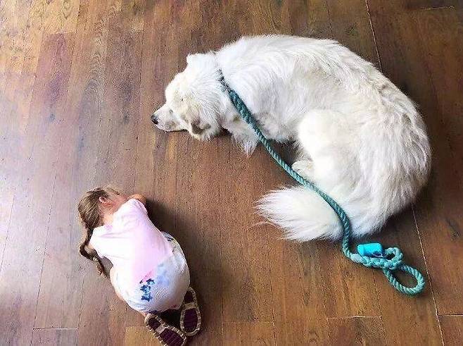 이렇게 거대해져도, 그레이트 피레니즈는 조금도 무섭지 않습니다.