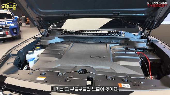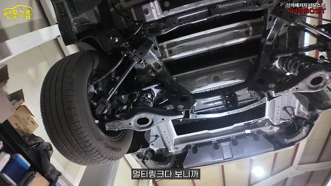 하지만 장단점이 있는데, 타스만은 아무리 부드럽다 해도 뒤쪽 서스펜션이 리프 스프링 방식이라 공차 상태에서는 통통 튀는 느낌을 완전히 걷어내지 못했습니다. 그에 비해 이 차는 멀티링크 서스펜션이라 훨씬 부드럽고 안정적입니다. 물론 500kg의 중량을 버티기 위해 스프링이 굉장히 두꺼워져서 좀 탄탄하긴 하지만, 타스만보다는 확실히 승차감이 좋습니다.