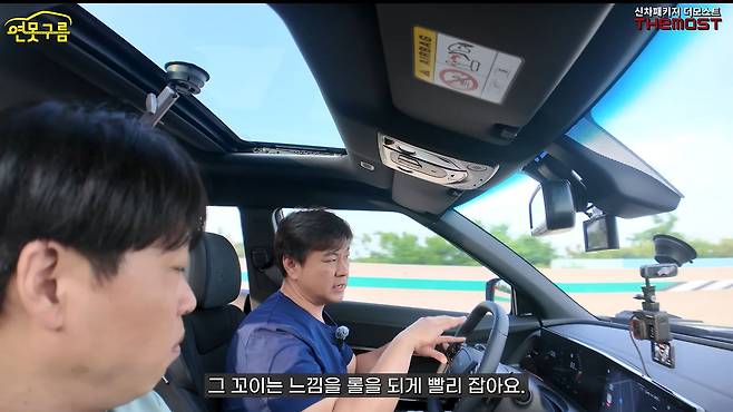지금도 언덕을 넘을 때 차체가 살짝 꼬이는 느낌이 있었는데, 그 롤을 굉장히 빨리 잡아줍니다. 오늘 오전에 아이오닉 5 하체 작업을 하고 시운전을 오래 했는데, 그것과 비교하면 이 차가 조금 더 다루기 편하고 컴포트한 느낌마저 듭니다.