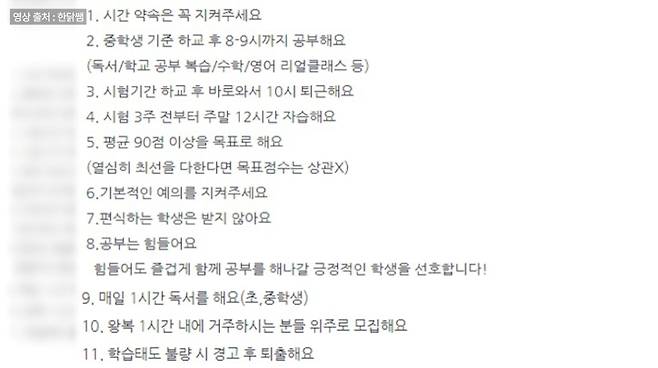 1년 전부터 무료로 전환된 ‘삐약이교실’의 입소 조건은 무척 까다로워졌습니다. 무엇보다 공부에 대한 의지가 있어야 하고, 11가지의 규칙 및 약속을 잘 지킬 수 있는 근면 성실함이 필수조건이죠. 조금이라도 흐트러진다면 곧바로 퇴실 됩니다.