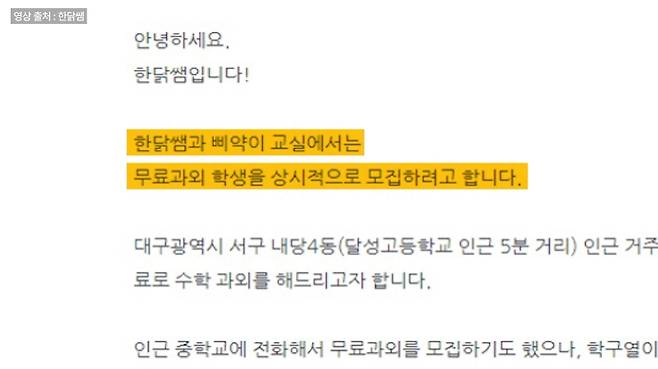 밥 잘해주는 과외 선생님 ‘한닭쌤’