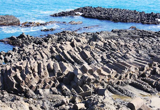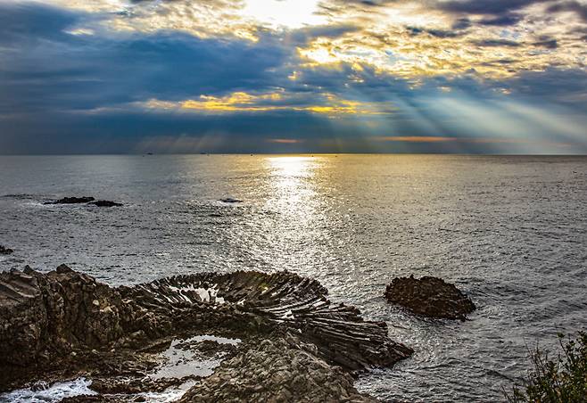 양남 주상절리군은 2012년 천연기념물로 지정될 만큼 발달 규모와 형태의 다양성을 인정받은 지질 유산입니다. 주상절리는 현무암이 식으면서 수축해 형성되는 기둥 모양의 암석 구조를 말하는데, 보통은 위로 솟은 육각기둥 형태가 대표적입니다.