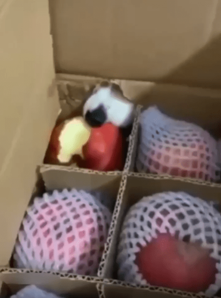 움직임은 아주 조심스럽고, 묘하게 진지합니다. 박스 안쪽을 향해 숨을 들이쉬고, 사과를 향해 천천히 입을 벌리더니, 아주 작은 오물거림이 시작됩니다. 꺼내서 먹는 것도 아니고, 흘리거나 난장판을 만드는 것도 아닙니다. 그저 구멍 안에서만 조용히, 살짝씩 맛을 보고 있는 중이죠. 딱 한 입만. 아니, 한 입을 여러 번 나눠서 먹는 것처럼요.
