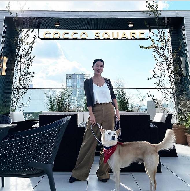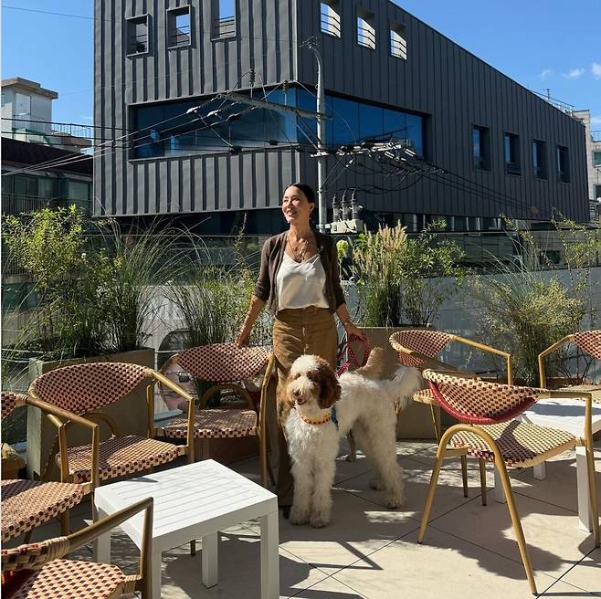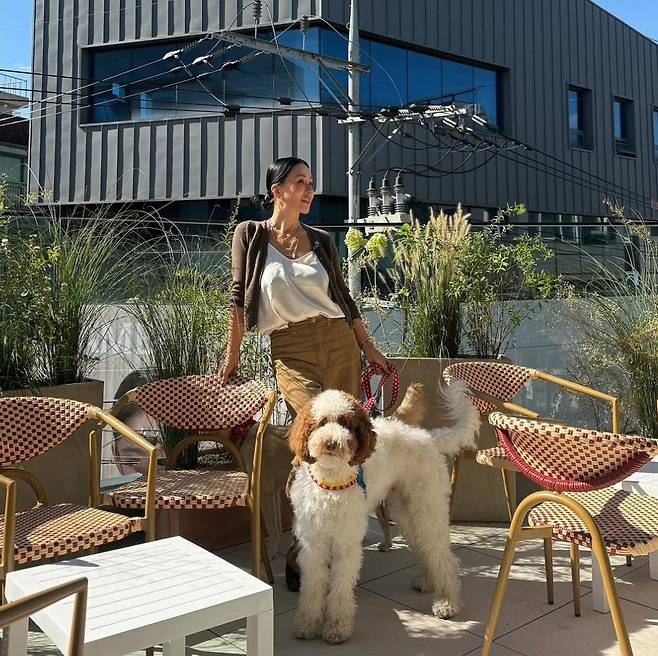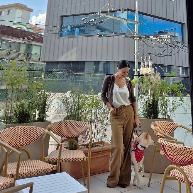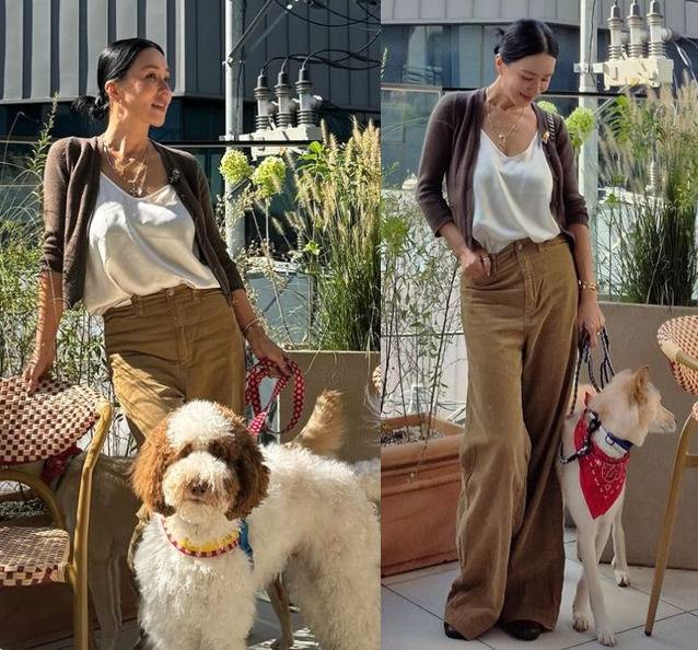배우 겸 가수 엄정화가 반려견과 함께한 일상 속에서 편안하면서도 세련된 패션을 선보였습니다.
