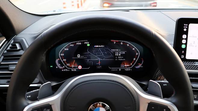 그런 주행 모드에 따른 변화의 차이가 정말 확실했다. X4의 최고 사양 모델인 만큼 주행 편의 장비도 모두 탑재되어 있다. 드라이빙 어시스턴트 프로페셔널이 적용되어, 고도화된 주행보조 기능은 장거리 여정에서의 운전 피로를 덜어줄 수 있겠다. 파킹 어시스트 플러스는 서라운드 뷰 카메라의 상세한 개입으로 좁은 골목길에서의 주행까지 보조해 준다. 디지털 인터페이스의 ui가 한세대 이전에 머물지만, 실질적으로는 무선 미러링을 사용하므로 오히려 직관적인 테마가 나쁘지 않다. 제스처 컨트롤까지 겸비한다.