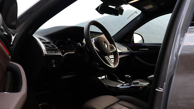 인테리어 디자인은 보수적으로 직관성을 추구하고 있다. 12.3인치 크기의 디지털 클러스터와 센터 스크린, 그리고 센터패시아 디자인까지 모두 간결한 조작성을 지닌다. 센터 콘솔에는 M 레터링 가니시가 부착되며, 수납식 커버나 주변 스티칭 패턴 등 소재감이 훌륭했다. 레버 타입 변속기를 택했고, i 드라이브 다이얼이나 각종 주행모드가 센터 콘솔에 함께 배치된다. M 스포츠 스티어링 휠이 적용되어 디자인적인 이점은 물론, 더욱 끈끈한 그립감을 제공할 수 있다. 탄탄한 지지력을 갖춘 시트나 앰비언트 라이트 등 고급감은 확실하다.
